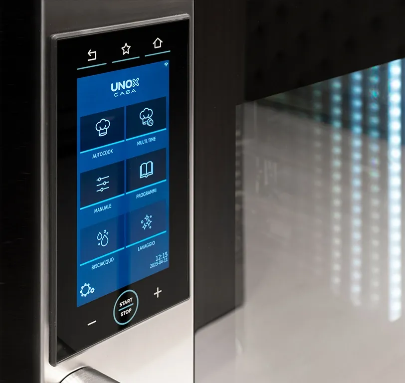 Technological and cutting-edge, SuperOven is equipped with an easy-to-use and intuitive digital control panel that allows you to activate over 400 cooking programmes, for which all it takes is to select the type of food and the desired result and the oven automatically determines the settings, adapting them to the amount of food being cooked.