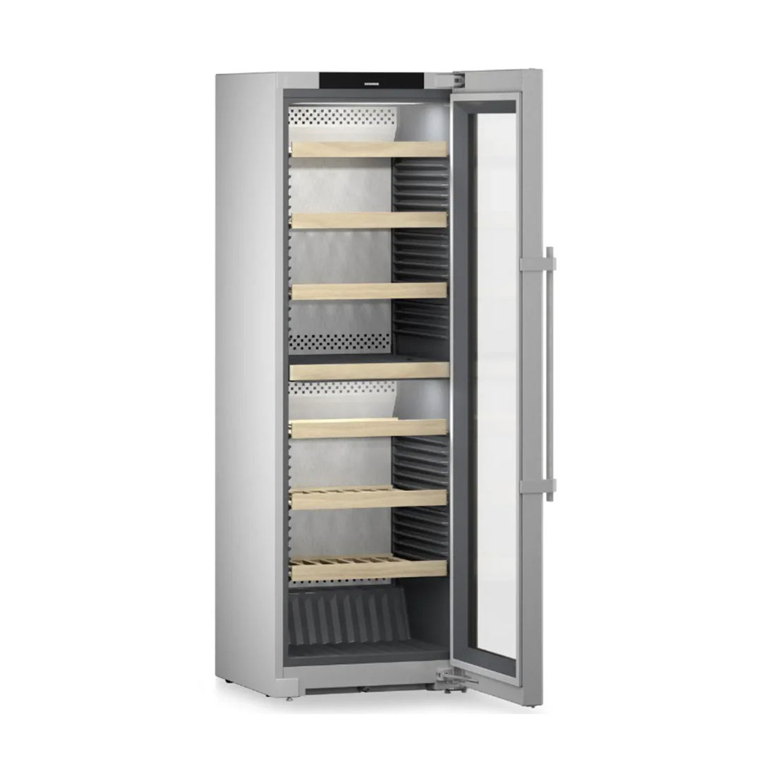 Your wine needs peace and quiet. That’s why our wine tempering fridges guarantee gentle safekeeping with particularly quiet compressors specially developed by Liebherr and stable wooden shelves made of solid beech wood. This allows your wine to mature quietly and undisturbed.